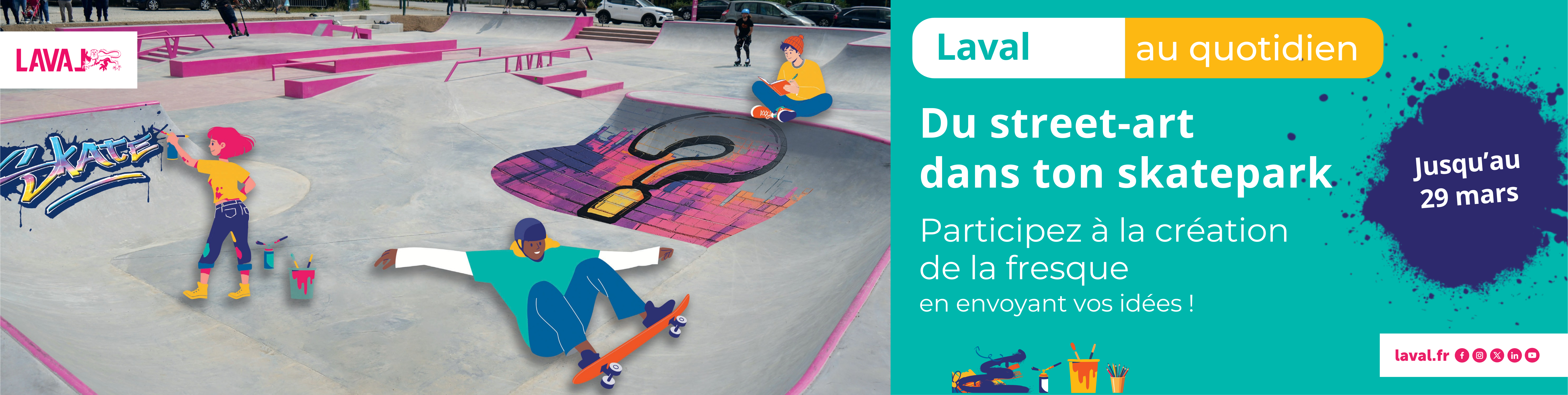 Toggle navigation Charger un questionnaire non terminé Finir plus tard Sortir et effacer vos réponses défaut Attention : l’exécution de JavaScript est désactivée dans votre navigateur ou sur ce site. Vous risquez de ne pas pouvoir répondre à toutes les questions. Veuillez vérifier les paramètres de votre navigateur. Street Art – Appel à participation La Ville vous invite à contribuer à une œuvre collective qui habillera les murs du skatepark. Une idée, une chanson, un dessin, quelques mots… partagez votre vision du vivre ensemble ! Il y a 9 questions dans ce questionnaire. Votre proposition Aucune compétence artistique n’est requise. Toutes les propositions seront étudiées et serviront de base à la création d’une fresque monumentale, retravaillée lors d’ateliers encadrés par l’artiste Romain Poirier. (Cette question est obligatoire) Sous quelle forme souhaitez-vous partager votre idée ? Cochez la ou les réponses Texte / mots / phrase Paroles de chanson Dessin (à joindre en fichier) (Cette question est obligatoire) Décrivez votre idée ou écrivez votre proposition Envoi de votre proposition Veuillez envoyer entre 1 et 2 fichiers Envoyer des fichiers × Charger des fichiers Vos coordonnées (Cette question est obligatoire) Nom (Cette question est obligatoire) Prénom (Cette question est obligatoire) Âge Veuillez sélectionner une réponse ci-dessous Veuillez choisir ... ☐ 8–12 ans ☐ 13–17 ans ☐ 18 ans et + (Cette question est obligatoire) Tél Seuls des nombres peuvent être entrés dans ce champ. (Cette question est obligatoire) Adresse mail (Cette question est obligatoire) Je souhaite être contacté(e) pour participer aux ateliers de création. Oui Non Les informations recueillies via ce formulaire sont utilisées uniquement dans le cadre de l’appel à participation Street Art. Elles ne seront ni conservées au-delà du projet ni transmises à des tiers. Envoyer Charger un questionnaire non terminé Finir plus tard Veuillez confirmer que vous souhaitez effacer vos réponses ? Sortir et effacer vos réponses ×